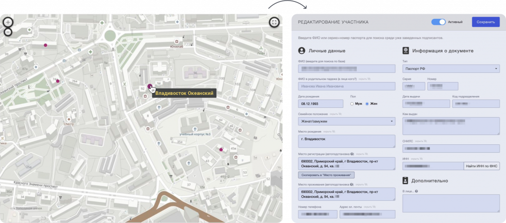 Решение. Показать на интерактивной карте, где жили покупатели новой недвижимости. Для этого интегрировать в CRM сервис «Дадаты» «Геокодер», превратив адреса покупателей в координаты.