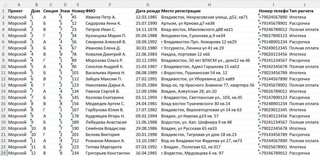 Кто прав — быстро не определить. Было бы удобно посмотреть, где жили покупатели квартир в аналогичных ЖК. Но адреса хранятся в CRM в виде текста, причем без единого формата.
