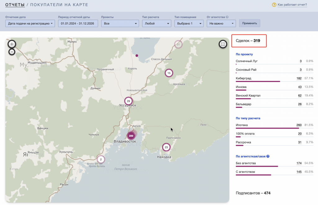 Если много покупателей приходит из конкретного города или района, застройщик увеличивает бюджет на рекламу в этом регионе.
